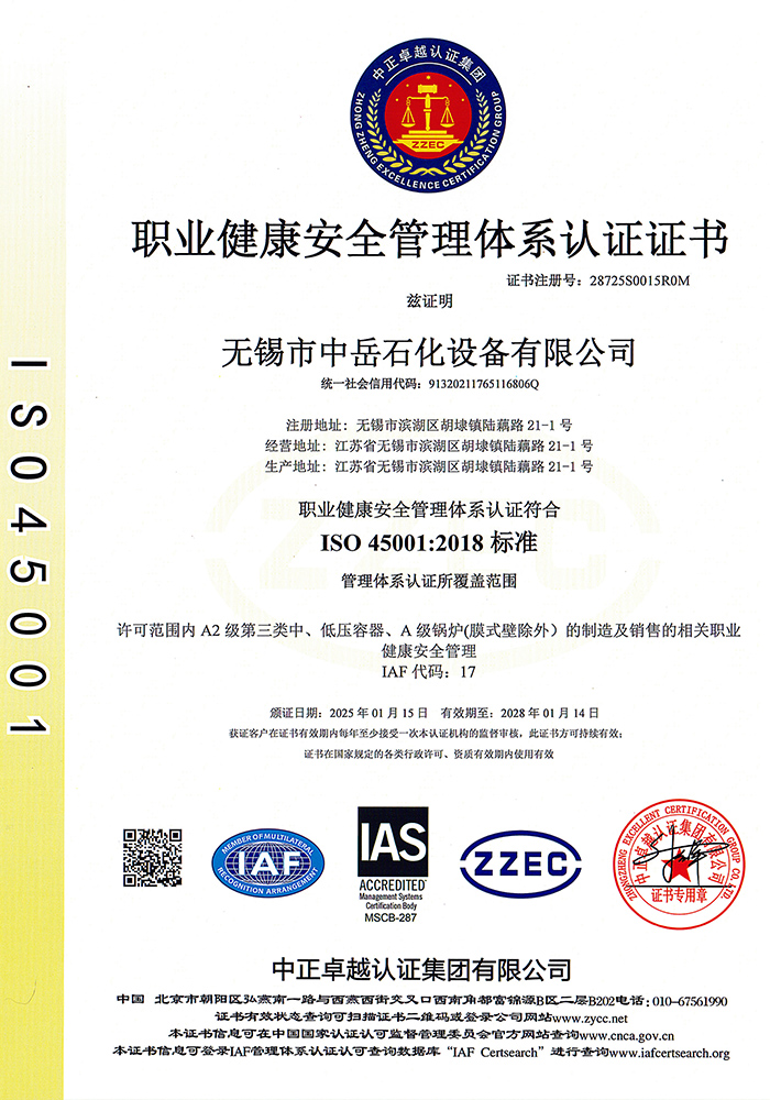 中岳石化下設四個控股子公司——無錫市中岳石化設備有限公司、無錫華凱環境工程有限公司、山西中岳實業有限公司、武漢中岳節能技術有限公司。總部位于經濟發達的長江三角洲,風景秀麗的太湖之濱——無錫市胡埭工業園區。是專業生產石油、化工、醫藥、染料、冶金、環保、焦化等行業用成套設備的專業公司。公司銀行資信等級4A級,公司注冊資金:3080萬,并獲得江蘇省高新技術企業、無錫換熱技術工程裝備中心證書,同時也是國內外主要工程公司設計院的合格供應商。